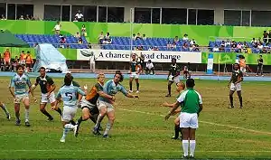 Матч по регби-7 между командами Южной Африки и Аргентины на Всемирных играх