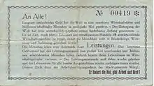 - Нотгельд (1914—1923) — многочисленные региональные выпуски в Германии для заполнения нехватки разменных денег