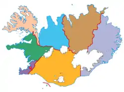 | 4 | Вестфирдир | Vestfirðir | 7,066 | 8,842 | 0.80 | IS-4 | 8 | Исафьордюр | ![]() |