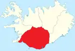 | 8 | Сюдюрланд | Suðurland | 31,388 | 30,983 | 1.01 | IS-8 | 15 | Сельфосс | ![]() |