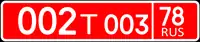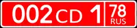 ![]() | Тип 9 — Регистрационные знаки для легковых автомобилей глав дипломатических представительств. Тип 10 — Регистрационные знаки легковых, грузовых автомобилей и автобусов дипломатических представительств, консульских учреждений, в том числе возглавляемым почётными консульскими должностными лицами, международных (межгосударственных) организаций и их сотрудников, аккредитованных при Министерстве иностранных дел Российской Федерации. Тип 11 — Регистрационные знаки для мотоциклов дипломатических представительств, консульских учреждений, в том числе возглавляемым почётными консульскими должностными лицами, международных (межгосударственных) организаций и их сотрудников, аккредитованных при Министерстве иностранных дел Российской Федерации. Номера типа 11 введены новым ГОСТом. В старом ГОСТе до марта 2002 года также существовал тип 11, но он принадлежал одному из отменённых типов. Выполняются белыми символами на красном фоне. Основную информацию на таком номерном знаке несут первые три цифры кода (код страны), а также последующая (у мотоциклов — предыдущая) буква (-ы). Цифровой код указывает на принадлежность к определённому иностранному государству (см. таблицу кодов ниже), расшифровка буквенного префикса следующая: