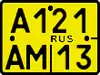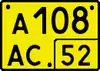 ![]() ![]() ![]() ![]() | Тип 4 — Регистрационные знаки для мотоциклов. Изготавливаются из квадратной светоотражающей пластины, с использованием цифр и букв чёрного цвета (4 цифры в верхней строке, две буквы в нижней). Номер региона регистрации — в нижнем правом углу, чуть выше — надпись RUS. Новый ГОСТ немного изменил внешний вид данного номера: рядом с надписью RUS появилось изображение государственного флага РФ, а сам номер стал меньшего размера. Следующие два типа введены новым ГОСТом и сразу имеют уменьшенные размеры. Тип 4А — Регистрационные знаки для внедорожных мототранспортных средств, не предназначенных для движения по автомобильным дорогам общего пользования (снегоболотоходы, мотовездеходы). Изготавливаются из квадратной светоотражающей пластины, с использованием цифр и букв чёрного цвета (4 цифры в нижней строке, две буквы в верхней). Номер региона регистрации — в верхнем правом углу, чуть ниже — надпись RUS и изображение государственного флага РФ. До введения нового ГОСТа данная техника обычно регистрировалась номерами типа 3. Тип 4Б — Регистрационные знаки для мопедов. Изготавливаются из квадратной светоотражающей пластины, с использованием цифр и букв чёрного цвета (две буквы и две цифры в верхней строке, ещё две буквы в нижней). Номер региона регистрации — в нижнем правом углу, чуть выше — надпись RUS и изображение государственного флага РФ. До введения нового ГОСТа данную технику надлежало регистрировать номерами типа 4, но фактически мопеды не регистрировались в ГИБДД. |
