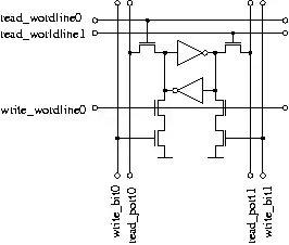 Итак, каждый порт чтения требует один дополнительный транзистор на каждую ячейку, порт записи требует 4 транзистора.