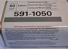 - “SR 514.101 Verordnung des VBS über die persönliche Ausrüstung der Armeeangehörigen (VPAA-VBS) vom 9. Dezember 2003 (Stand am 1. Januar 2015): art. 7 Taschenmunition Ziff 1” (official site) [нем., фр., and итал.]. Berne, Switzerland: The Swiss Federal Council. 21 December 2007. Дата обращения 2016-12-06.