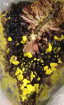 ![]() Резерфордин из шахты Мусоной, Колвези, Демократическая Республика Конго (поле зрения — 7 мм) | |