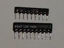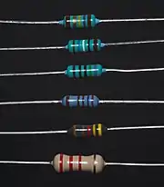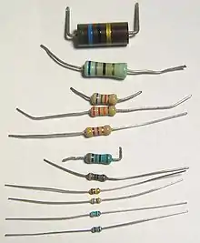 Рези́стор (англ. resistor, от лат. resisto — сопротивляюсь) — пассивный элемент электрических цепей, обладающий определённым или переменным значением электрического сопротивления[1], предназначенный для линейного преобразования силы тока в напряжение и напряжения в силу тока, ограничения тока, поглощения электрической энергии и др.[2]. Весьма широко используемый компонент практически всех электрических и электронных устройств.