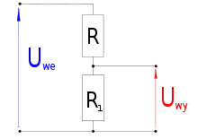 Резистивный делитель напряжения можно представить как два последовательных резистора, называемые плечами, сумма напряжений на которых равна входному напряжению. Плечо между нулевым потенциалом и средней точкой называют нижним: с него обычно снимается выходное напряжение делителя.