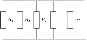 Из закона Ома ток через каждый резистор равен: , но разность потенциалов на всех резисторах будет одинакова, поэтому перепишем уравнение суммы токов: