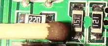 - неправильный выбор типа резистора из расчёта предельно допустимой мощности нагрузки без запаса и учёта того, что критическая нагрузка может оказаться превышенной в результате изменения параметров других компонентов схемы