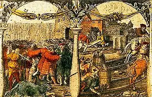 Массовые кровопролития известны с глубокой древности (эфесская вечерня, избиение младенцев) и средневековья (резня латинов, сицилийская вечерня). Французский термин massacre (букв. «убой животных») получил широкое распространение в английском и других европейских языках для обозначения массового вырезания гугенотов в Варфоломеевскую ночь 1572 года. Данный термин является оценочным и эмоционально окрашенным; его употребление подчёркивает отсутствие валидного морального обоснования для казней[1].