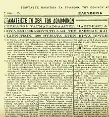 - 4 Εφημερίδα «Ελευθερία», 17/10/1960, "Από τα μυστικά Αρχεία του Τρίτου Ράιχ