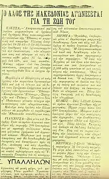 Весной и летом 1943 года подпольные организации организовали акции протеста против гражданской мобилизации. Аналогичные демонстрации были проведены в эти дни в Эдессе, Верии и Наусе[4].
