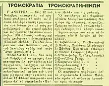 Оккупанты видя, что их пребывание в стране близится к концу, пытались террором упредить удары греческого Сопротивления при своём отступлении[15].