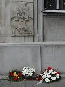 Трагедию увековечивают также две мемориальные доски: одна, стоящая около забора храма со стороны ул. Раковецкой и вторая, проекта Карла Тхорка, на стене Collegium Bobolanum (со стороны ул. Боболи).