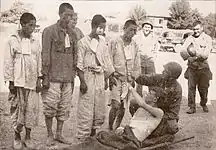 ![]() Тела жертв резни, произошедшей на высоте 303 около Вэгвана (руки многих убитых по-прежнему связаны) | |||
