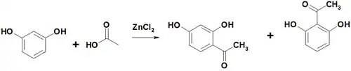 С ледяной уксусной кислотой в присутствии хлорида цинка при 145 °C образует ацетофеноны.
