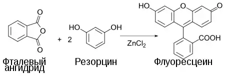 С фталевым ангидридом в присутствии хлорида цинка (175—196°С) конденсируется с образованием флуоресцеина.