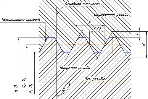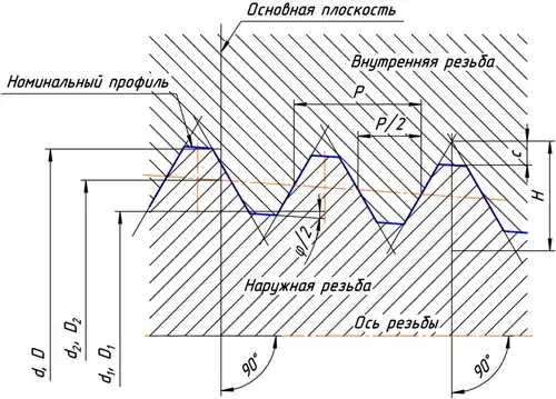 - Номинальный диаметр — диаметр, условно характеризующий размеры резьбы и используемый при ее обозначении.