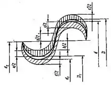 - Наружный диаметр (, ) — диаметр цилиндра, описанного вокруг вершин наружной или впадин внутренней резьбы . Равен диаметру заготовки болта перед нарезкой резьбы.