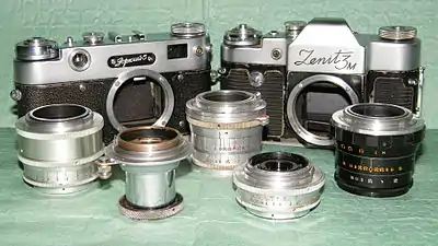 | Зенит[5] | 45,2 | 39 | 24×36 мм | резьба | 1953—1967 |