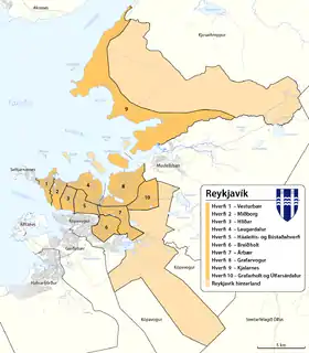 Рейкьявик разделён на 10 административных районов:[6][7]
