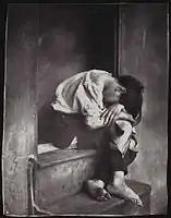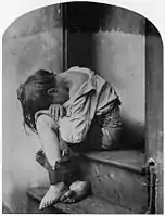 Оскар Густав Рейландер. Несчастный Джо, 1861. Деревянные ступени — реквизит студии Рейландера — выдают постановочный характер фото