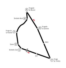 Трасса своими очертаниями напоминает треугольник. C 1952 года конфигурация трассы значительно изменена, был убран участок, ведущий к повороту Gueux, северная вершина треугольника переместилась к Virage de Muizon и был ликвидирован поворот Virage de la Garenne. В 1953 году был смягчён 135-градусный поворот Virage de Thillois, что повлекло рост средних скоростей участников до 220 километров в час. В этой конфигурации трассу обычно называют Реймс (Reims).