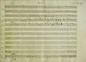 ![]() Первая страница партитуры, рукопись Моцарта | |