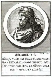 Реккаред I[К 1] (готск. Raikaraids, лат. Flavius Reccaredus, Recaredus; умер в 601) — король вестготов с 586 года. Младший сын Леовигильда, брат Герменегильда. Его имя носил столичный город Реккополис[3]. После смерти Леовигильда во второй половине апреля или начале мая 586 года Реккаред без затруднений стал королём[4]. По существу это был первый случай спокойного наследования королевской власти у вестготов после воцарения Алариха II сто лет назад и, конечно же, явилось наглядным результатом политики Леовигильда.
