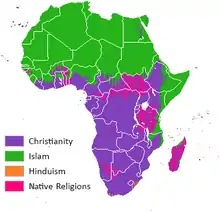 В Африке распространено несколько основных религий. Большинство африканцев придерживается христианства или ислама, однако многие их приверженцы также практикуют и традиционные африканские религии, включая народные и синкретические[1].