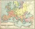 Распространение христианства в Европе и Средиземноморье до Нового времени, с разделом церкви на Восточную и Западную.
