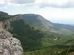 Низменные пространства Северного Крыма, который является продолжением Причерноморской низменности (за исключением Керченского полуострова, который отличается холмистым рельефом и наличием грязевых вулканов), на юге сменяются Крымскими горами (наивысшая — Южная, или Главная Крымская гряда с вершиной Роман-Кош — 1545 м). Для рельефа Крымских гор характерны выровненные поверхности (яйлы) с широким развитием карстовых форм.