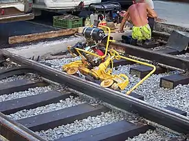 - переносные рельсошлифовалки с электроприводом — для зачистки направленных концов рельсов, крестовин и остряков стрелочных переводов