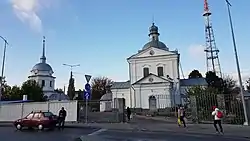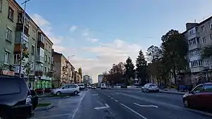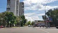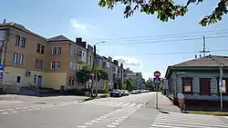![]() Конец улицы — вид со стороны улицы Ивана Мазепы. На заднем плане колокольня Воскресенской церкви | |