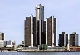 ![]() вид на Ренессанс-центр со стороны реки Детройт | |