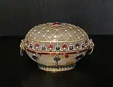 | Нет документальных свидетельств. По одной из версий — украшение из жемчуга, по другой — яйцо Воскресение Христово | |