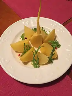 Корень утолщённый, мясистый.