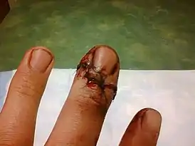 ![]() Реплантированный палец 18-летнего мужчины. США | |