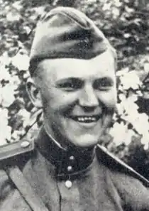 На фронте в Великую Отечественную войну с июля 1942 года. Окончил Подольское военное пехотное училище в 1943 году. Был командиром взвода 925-го стрелкового полка (249-я стрелковая дивизия, 8-я армия, Ленинградский фронт). Отличился в бою на острове Муху (Эстонская ССР): 29 сентября 1944 года его взвод в составе батальона на торпедных катерах форсировал пролив Суур-Вяйн и вступил в бой за плацдарм. Был дважды ранен, но остался в строю.