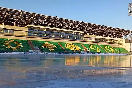 В 2019-2021 годах в рамках подготовки к Чемпионату мира по хоккею с мячом была проведена реконструкция стадиона. Были полностью перестроены Западная, Южная и Северная трибуны стадиона, заменены мачты освещения, реконструированы оба поля, устроены контрольно-пропускные пункты и наземные стоянки для транспорта[3][4].