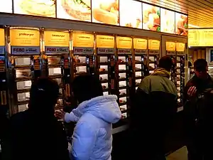 Американские сети, такие как Dominos, Макдональдс, Pizza Hut и KFC присутствуют в Японии, но и местные рестораны быстрого питания «Гюдон», такие как Sukiya, Matsuya и Yoshinoya, также очень популярны. Япония имеет свои собственные сети бургерных, например, MOS Burger, Lotteria и Freshness Burger.