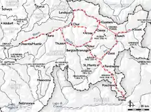 Идёт по долине Рейна, более или менее параллельно с линией Швейцарских федеральных железных дорог Сарганс — Ландкварт — Кур до Кура. Линия до Тузиса следует вдоль Рейна к Бонадуцу. Оттуда попадает в долину Domleschg и следует вдоль Хинтеррейна до Тузиса.