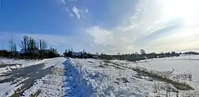 ![]() Панорама деревни. Справа — пойма реки Псижа | |