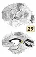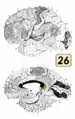 ![]() Ретроспинальная кора расположена в 26, 29 и 30 полях по Бродману | |