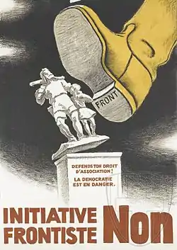 Инициатива стала второй гражданской инициативой после инициативы 1935 года о «Полном пересмотре федеральной конституции», которая была выдвинута крайне-правыми фронтами. Предложение было инициировано фашистским и антимасонским политиком Артуром Фоньяллазом, ультраправым политиком Жоржем Ольтрамаре и политиком Готлибом Дуттвейлером.