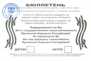 Образец бюллетеня на референдуме по вопросу о независимости ЛНР. | |