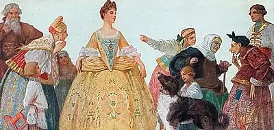 Пётр пытался изменить положение женщин в русском обществе. Он специальными указами (1700, 1702 и 1724) запретил насильственную выдачу замуж и женитьбу. Предписывалось, чтобы между обручением и венчанием был не менее чем шестинедельный период, «дабы жених и невеста могли распознать друг друга». Если же за это время, говорилось в указе, «жених невесты взять не похочет, или невеста за жениха замуж идти не похочет», как бы на том ни настаивали родители, «в том быть свободе». С 1702 года самой невесте (а не только её родственникам) было предоставлено формальное право расторгнуть обручение и расстроить сговорённый брак, причём ни одна из сторон не имела права «о неустойке челом бить». Законодательные предписания 1696—1704 годов о публичных празднествах вводили обязательность участия в торжествах и празднествах всех россиян, в том числе «женского пола»[29].