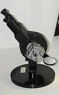 Так как обычно источники света не монохроматичны, до окуляра располагают компенсатор из двух одинаковых призм Амичи.