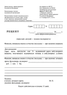 Медицинский работник оформляет назначение лекарственных средств для медицинского применения на рецептурном бланке установленного образца.[2]
