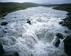 Поро́г, поро́ги — каменистый или скалистый участок в русле водотока (реки или ручья) с повышенной скоростью течения и относительно большим падением отметок уровня воды, образовавшийся вследствие ступенчатого размыва русла, если материал его неоднороден. Более пологие и простые участки с быстрым течением называются перекатами и шиверами, а более отвеcные (обычно более 45o) — водопадами.